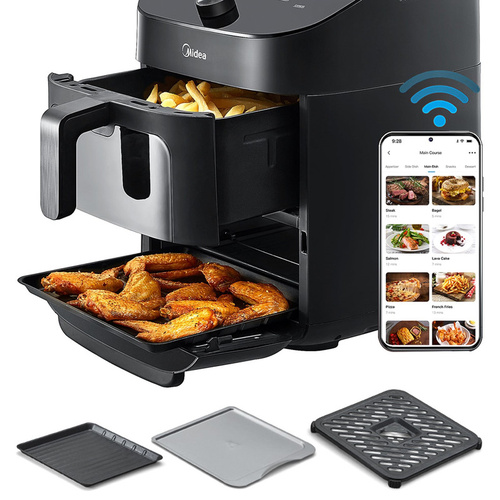 طراحی نوآورانه دو طبقه Midea: Mad -110 D2 apk این سرخ کن هوای دوتایی دارای یک سبد بالای 6QT و یک تابه پخت 5QT پایینی است که ظرفیت بزرگ 11QT را ارائه می دهد اما با طراحی منحصر به فرد خود جای کمتری را اشغال می کند. سبد برای سیب زمینی سرخ کرده، ناگت، و ماهی تابه برای پیتزا، نان. همه چیز به تو بستگی دارد! همه کاره بودن 8 در 1: سرخ کردن هوای Midea دارای 8 منوی از پیش تعیین شده است: سرخ کردن با هوا، گریل، آبگیری، پخت، کباب، برشته، گرم کردن و نان تست. این تنها 1 وسیله همه کاره شما در آشپزخانه خواهد بود! 3 لوله گرم کننده برای پخت و پز قدرتمند: سرخ کن هوای Midea دارای 3 لوله گرمایش در قسمت بالا، وسط و پایین حفره است که امکان کنترل دقیق دما و پخت عصرانه را برای هر منطقه فراهم می کند. بیش از 50 دستور العمل برنامه در نوک انگشتان: سرخ کن هوا 8 در 1 ما اتصال Wi-Fi و برنامه MSmart را با بیش از 50 دستور غذا ارائه می دهد، شما می توانید روند پخت و پز را از هر کجا نظارت و کنترل کنید. آشپزی با کارایی: فن آوری Smart Sync Finish به شما امکان می دهد 2 ظرف مختلف را همزمان تمام کنید، و مطمئن شوید که هر ظرف سرو شده با حداقل زمان پخت، داغ و تازه است.